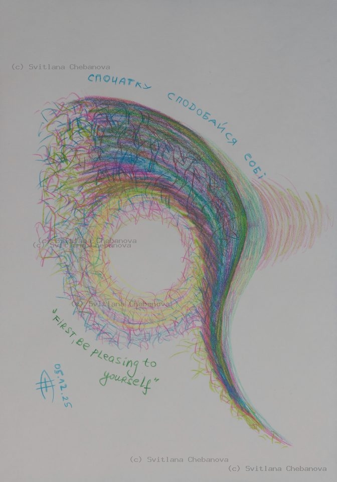 Svitlana Chebanova is a graphic artist and illustrator based in Mykolaiv, Ukraine. Her "Angel of the Day" series is a year-long exploration of form, color, and daily creative practice.