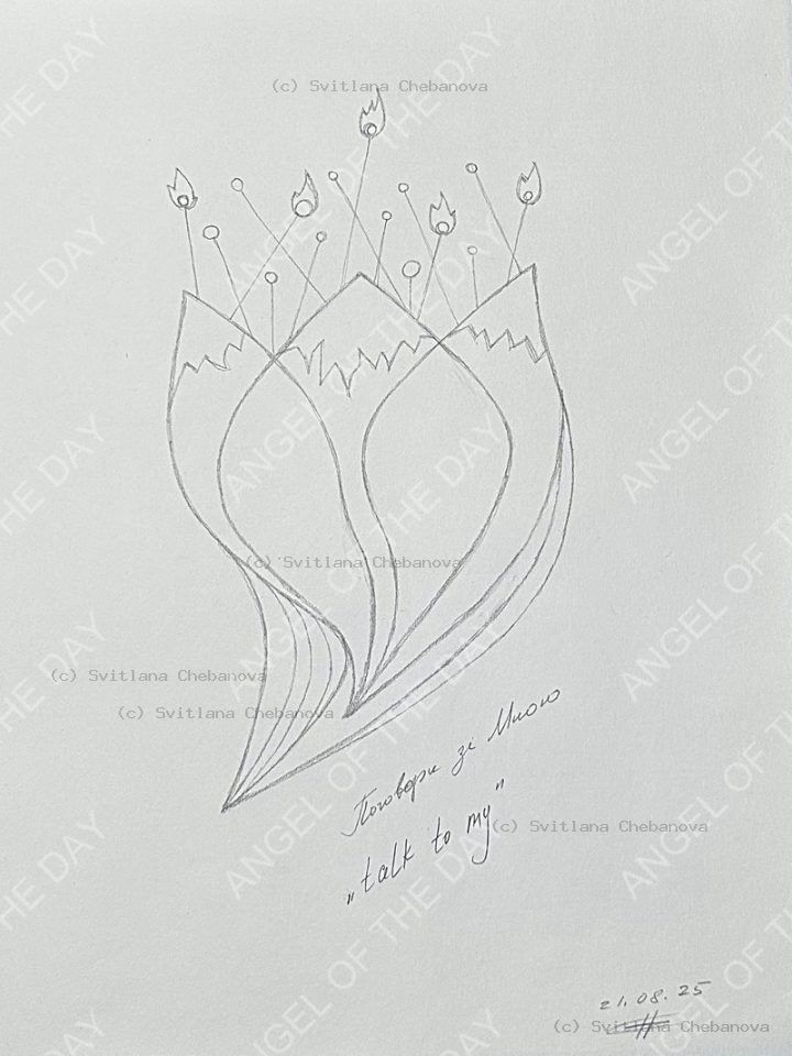 Svitlana Chebanova is a Ukrainian graphic artist and illustrator known for her daily angel series. Working from her studio in Mykolaiv, Ukraine, she creates one angel sketch each day as an ongoing meditation on hope, resilience, and spiritual presence.