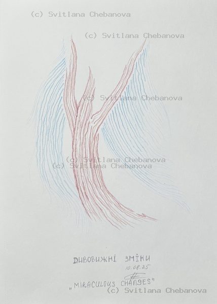 Svitlana Chebanova is a Ukrainian graphic artist and illustrator known for her daily angel series. Working from her studio in Mykolaiv, Ukraine, she creates one angel sketch each day as an ongoing meditation on hope, resilience, and spiritual presence.