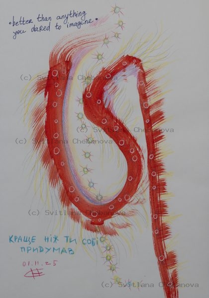Svitlana Chebanova is a Ukrainian graphic artist and illustrator known for her daily angel series. Working from her studio in Mykolaiv, Ukraine, she creates one angel sketch each day as an ongoing meditation on hope, resilience, and spiritual presence.