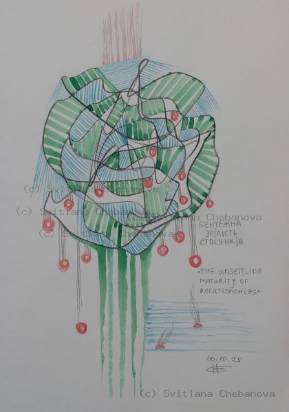 Svitlana Chebanova is a Ukrainian graphic artist and illustrator known for her daily angel series. Working from her studio in Mykolaiv, Ukraine, she creates one angel sketch each day as an ongoing meditation on hope, resilience, and spiritual presence.