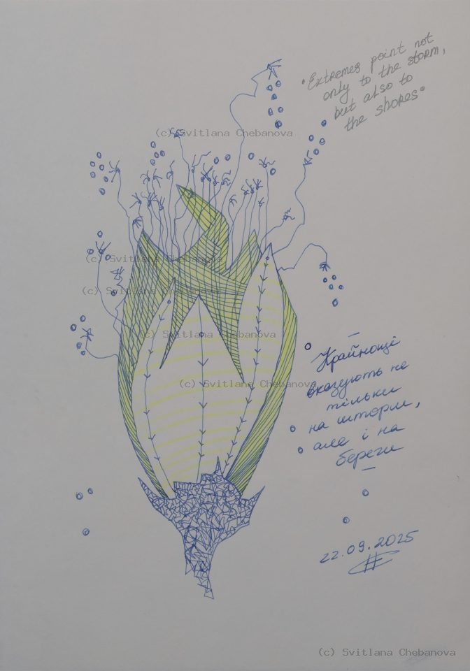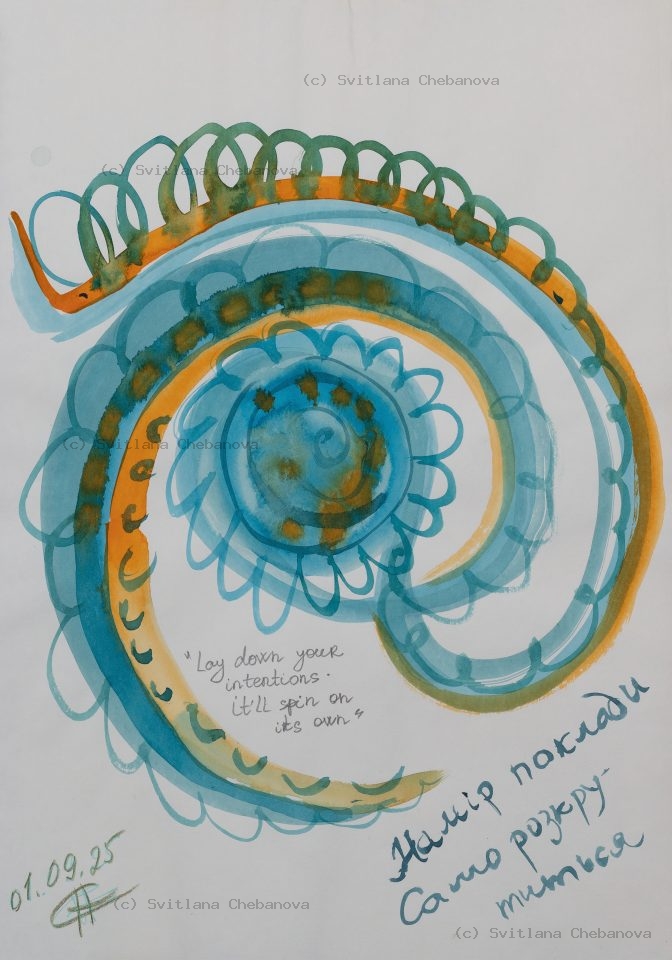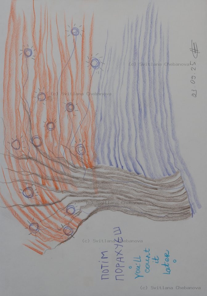Svitlana Chebanova is a graphic artist and illustrator based in Mykolaiv, Ukraine. Her "Angel of the Day" series is a year-long exploration of form, color, and daily creative practice.